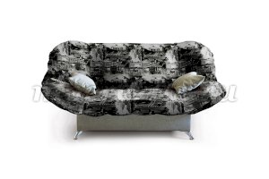 Прямой молодежный диван с декоративными подушками. Конструкция модели включает в себя несколько подвижных элементов, располагающихся сбоку и сзади нее. С помощью них можно придать дивану различную форму, разный наклон спинке и боковинам. Одно положение дивана позволяет комфортно отдыхать на нем «полулежа», другое спать на нем.