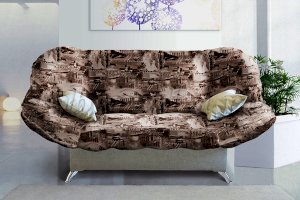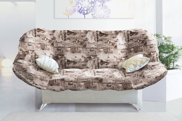 Дизайн дивана-кровати отличается оригинальностью, а также имеет съемный стеганый чехол, который по мере загрязнения можно постирать. В качестве обивочного материала для съемного чехла подойдет цветная качественная ткань: флок, терможаккард и другие.