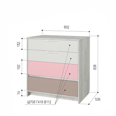 Внутреннее наполнение: шариковые направляющие (4 выдвижных ящика)