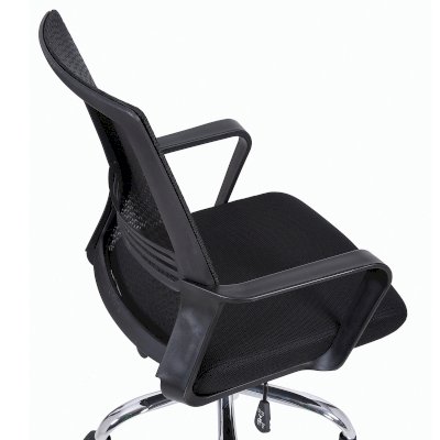 Спинка кресла выполнена из прочного сетчатого акрила с оригинальным "узором". Материал обладает высокой воздухопроницаемостью, легко чистится, способен подстраиваться под физиологические изгибы спины, при этом сохраняет форму и не растягивается. Залогом комфортного использования кресла также является эргономичная форма надёжного пластикового каркаса.