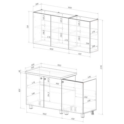 Глубина нижних модулей со столешницей: 600 мм