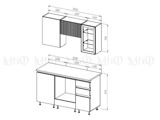 Высота верхних шкафов: 718 мм