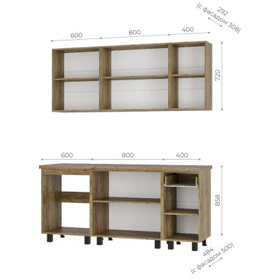 Глубина верхних модулей: 308 мм