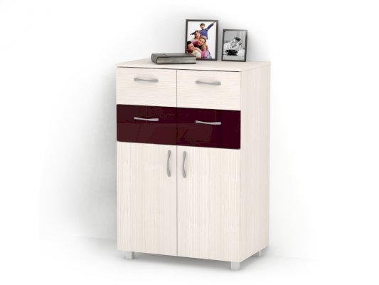 Данное изображение представлено в следующих цветах: корпус ЛДСП - Дуб молочный, фасады ЛДСП - Дуб молочный, фасады МДФ - Бордо глянец.