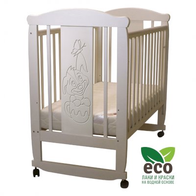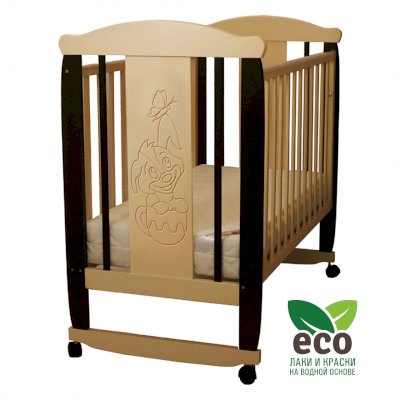 Кроватка "Соня 02" имеет механизм качания колесо-качалка. Колеса оснащены стопорами.