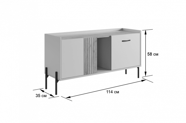 Длина ниши под телевизор, см 114