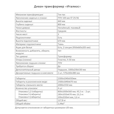 Диван-трансформер Италмас (Аквилон) - за 73 382 руб. в Егореьевске. Купите на сайте egorevsk.onlinemarketmebeli.ru или по телефону 8(800)505-30-63 уже сегодня! Уточнить наличие, комплектацию, актуальную цену можно бесплатно у менеджера ежедневно. Закажите Диван-трансформер Италмас (Аквилон) до конца акции! Доступна покупка в кредит, рассрочку. Доставим со склада или на заказ.