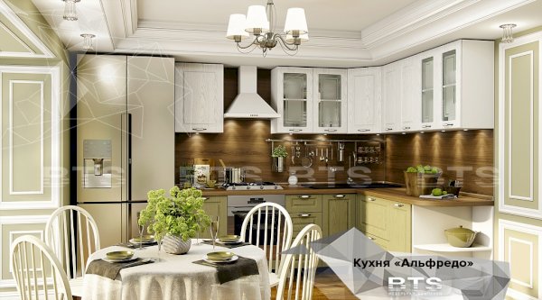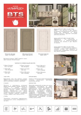 Модульная система "Альфредо" — это идеальный баланс современности и нестареющей классики. Подчеркнет настроение современного классического стиля, скандинавского и арт-деко. Декор F11 - это чистота и свет Вашего интерьера в отражении белого матового цвета, это идеальное по своей комбинаторности с другими палитрами цветовое решение. Декор F14- это спокойствие и сдержанность в бледно-оливковых оттенках, это теплота и уют Вашего интерьера. Декор F13 — это благородство серебра с теплыми нотами, это нежность и утонченность, отражающая безупречный вкус Вашего выбора. Четкие и лаконичные линии фрезеровки оттенены различными цветовыми решениями декора. Березовый спил под эмалью создает эффект крашеного дерева, придающего кухне атмосферу слияния с природой. Легкость и невесомость интерьеру Вашей кухни придает дизайн створок со стеклом, в декоре которого используется пескоструйная обработка. Дизайн рисунка стекла повторяет рисунок фрезеровки, тем самым объединяя разные текстуры в единое целое. Витражи верхних шкафчиков создают эффект аристократичности.