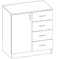 • Корпус, полки и фасады изготовлены из ЛДСП 16 мм с кромкой ПВХ 0,4 мм.