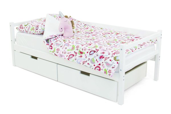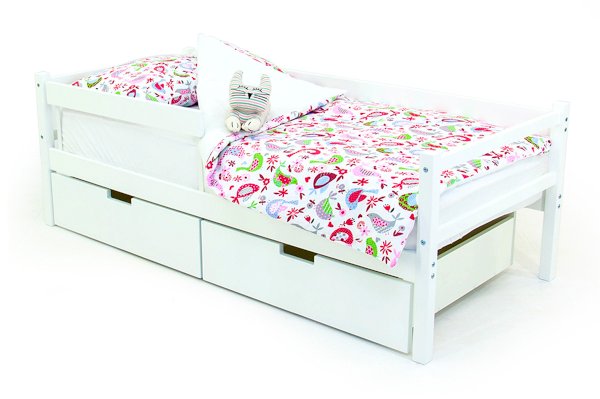 Кровать оборудована манежным бортиком, который защищает малыша от падения во время игр. А для обеспечения дополнительной безопасности малыша во время сна можно приобрести съемный бортик. Особенность его в том, что он закрывает кровать не по всей длине, а только ее часть, благодаря такому конструктиву, ребёнок легко сможет сам забираться на свое спальное место.