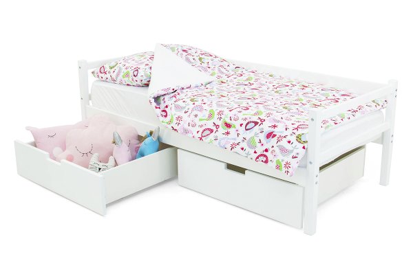 Для удобства хранения игрушек или постельных принадлежностей, вы можете приобрести еще вместительные ящики, которые устанавливаются под основание кровати. Многообразие цветов фасадов ящика позволяет скомплектовать разные варианты.