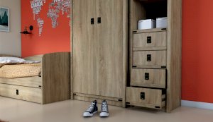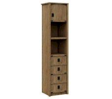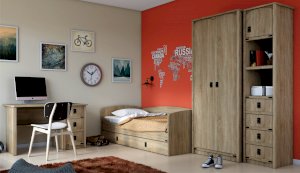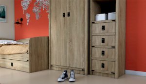 Пенал с открытыми и закрытыми полками служит для хранения учебников, тетрадей и других письменных принадлежностей. Декоративные накладки и профиль из МДФ по вертикальным краям закрывают острые края корпуса и придают шкафу более эффектный и надежной вид. Декоративные элементы на фасаде и металлические ручки MARINE бронзового цвета стилизованы под морскую тематику. Идеально компонуется со всеми модулями системы Валенсия.