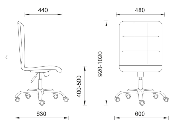 - Размер сиденья: 480х440 мм (ШхГ).
